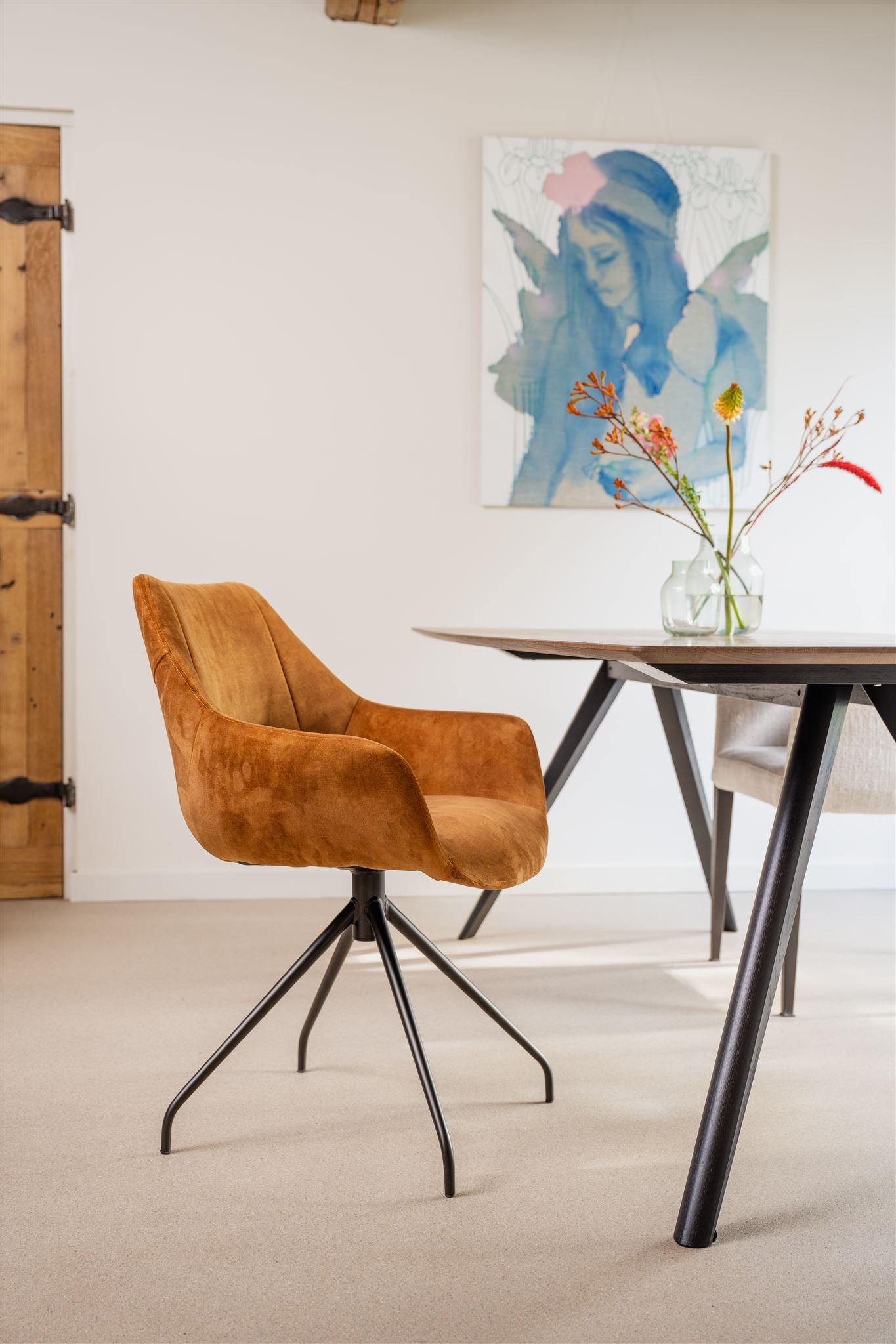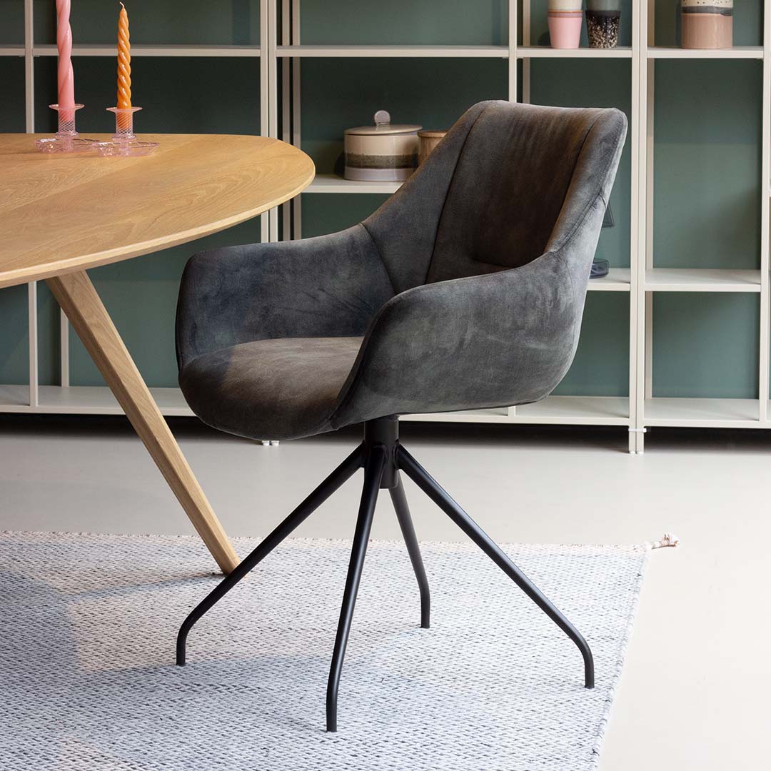 De Carbina stoel van Comodo zit heerlijk en is geschikt om urenlang te tafelen. De stoel heeft een comfortabele zitting gevuld met zacht schuim. De hoge rugleuning is perfect vormgegeven en biedt goede steun in de rug. De stevige metalen sterpoot is mooi matzwart gepoedercoat en maakt de stoel stabiel en solide. Tot slot maakt het horizontale stiksel op de rugleuning de stoel helemaal af: speels en modern!