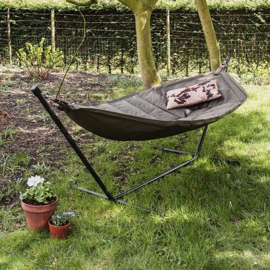 Ontdek de ultieme ontspanning met de Fatboy Headdemock hangmat. Ontworpen voor twee personen (tot max. 150 kg), biedt deze luxe hangmat een zorgeloze manier om te relaxen. Met zijn innovatieve ontwerp elimineert de Headdemock de noodzaak van bomen en touwen, waardoor je overal kunt genieten van een comfortabele hangplek. Gemaakt van duurzaam polyester met een metalen en rubberen frame, is deze hangmat gebouwd om lang mee te gaan. De water- en vuilafstotende, UV-resistente stof garandeert jarenlang plezier, terwijl de bijgeleverde draagzakken het opbergen na de zomer een fluitje van een cent maken. Geniet van ultiem comfort en gemak met de Fatboy Headdemock hangmat.