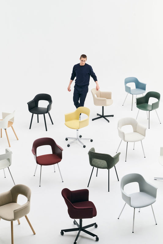 De Layout stoel is verkrijgbaar in ontelbaar veel mogelijkheden. Van strak zwart tot zacht pastel, kunststof of gestoffeerd, met een houten of stalen onderstel: Layout past zich moeiteloos aan. Aan jouw stijl, jouw ruimte, jouw dag. Werken, eten, overleggen of gewoon even zitten, deze stoel is er voor alles.