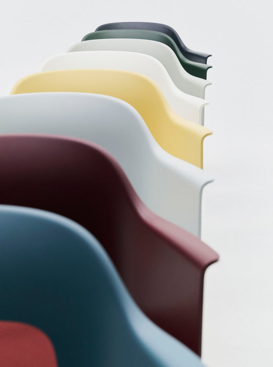 De Layout stoel van HAY, ontworpen door Julien Renault, is zo’n stoel waarvan je denkt: ja, precies dit. Wat de Layout nou zo bijzonder maakt? Alles is doordacht. Van het minimalistische silhouet met subtiele details tot de duurzame keuzes. De kuip is gemaakt van minstens 96% gerecycled kunststof, en elk onderdeel is los te halen. Handig voor onderhoud, nóg handiger voor de planeet. Daarnaast valt de opening in de rug gelijk op. Dit maakt de stoel luchtig, maar vooral een echte blikvanger.