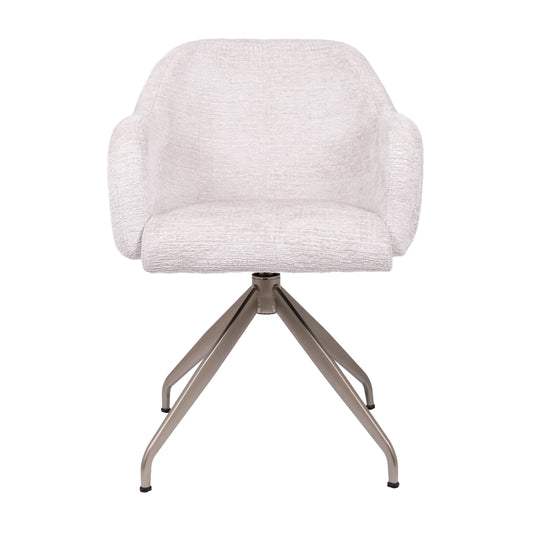 Zitten als een royal doe je op de HelloChair HC110 Velde eetkamerstoel! Door het mooie design en zijn rijke stof geeft ie elke eetkamer een flinke dosis klasse. De zachte zitting, fijne armleuningen en de handige draaifunctie maken deze stoel perfect voor lange avonden aan tafel, of je nu dineert, werkt of gezellig borrelt.