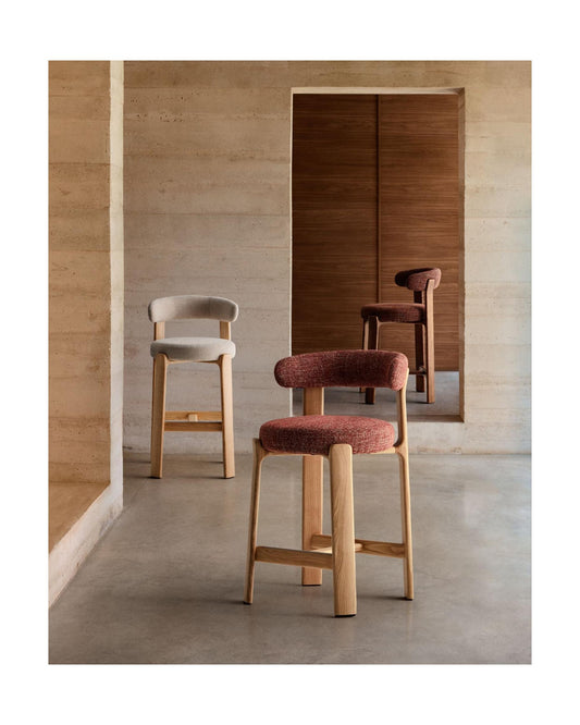 Kave Home Granite barkruk H75 chenille Beige/walnoot