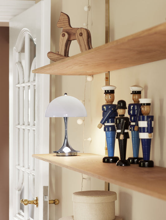 De Panthella is verkrijgbaar in een breed scala aan maten en kleuren. De kleuren variëren van stijlvol neutraal tot uitgesproken en speels. Perfect om je interieur een vrolijke twist te geven, van vensterbank tot nachtkastje.
