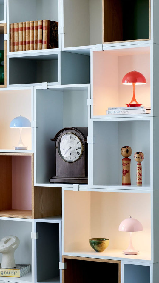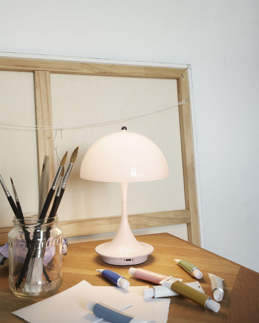 De Panthella is verkrijgbaar in een breed scala aan maten en kleuren. De kleuren variëren van stijlvol neutraal tot uitgesproken en speels. Perfect om je interieur een vrolijke twist te geven, van vensterbank tot nachtkastje.
