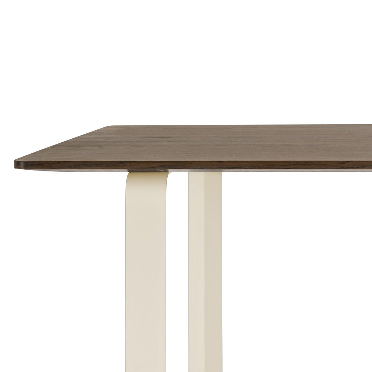 Deze moderne 70/70 eettafel van Muuto heeft op het eerste oog een simplistisch design maar als je goed kijkt vind je een aantal speelse details. Zo heeft het stevige onderstel van aluminium een driehoekige vorm en zijn de randen van het tafelblad licht schuin afgesneden.