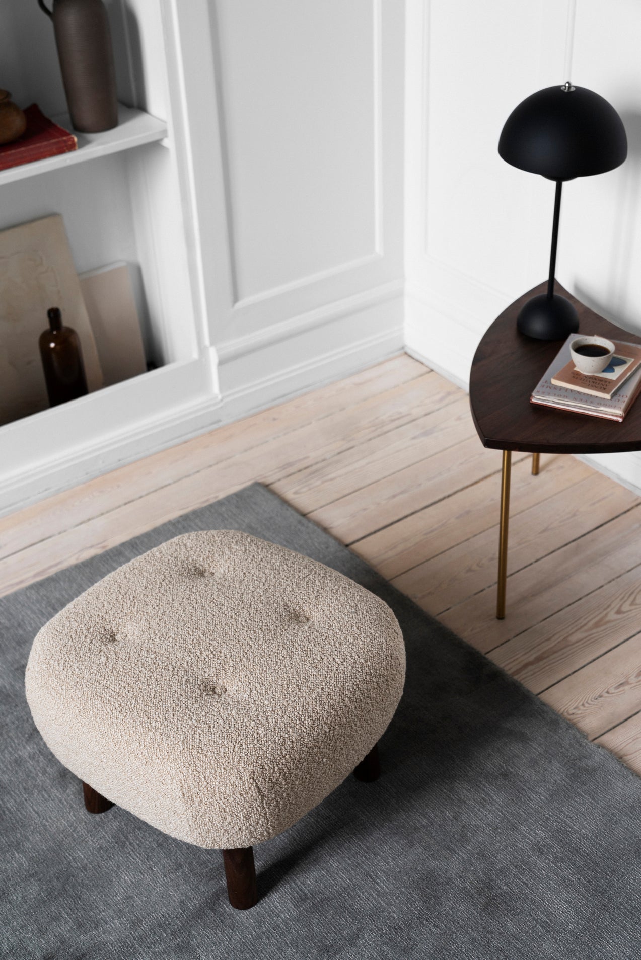 &Tradition Little Petra ATD1 poef Oiled Walnut Sheepskin Moonlight