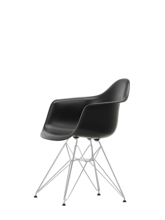Vitra Eames DAR eetkamerstoel met arm Deep Black verchroomd