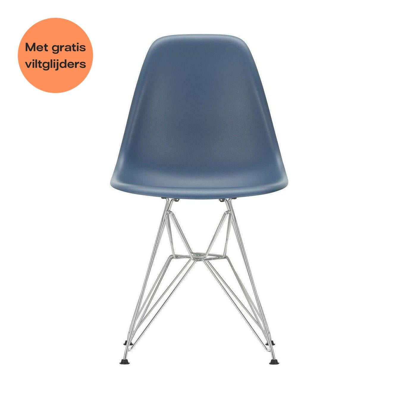 Vitra Eames DSR eetkamerstoel Sea Blue verchroomd