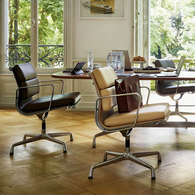 Het ontwerp van de Soft Pad komt uit 1969, ontworpen door Charles & Ray Eames. Deze zachte, luxueuze stoelen passen aan op jouw lichaam en bieden buitengewoon zitcomfort.