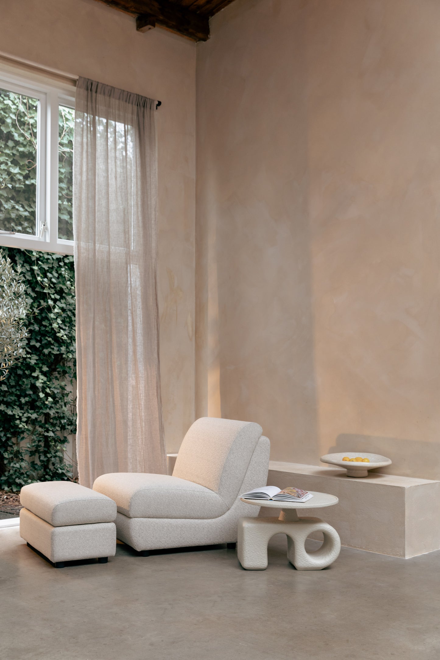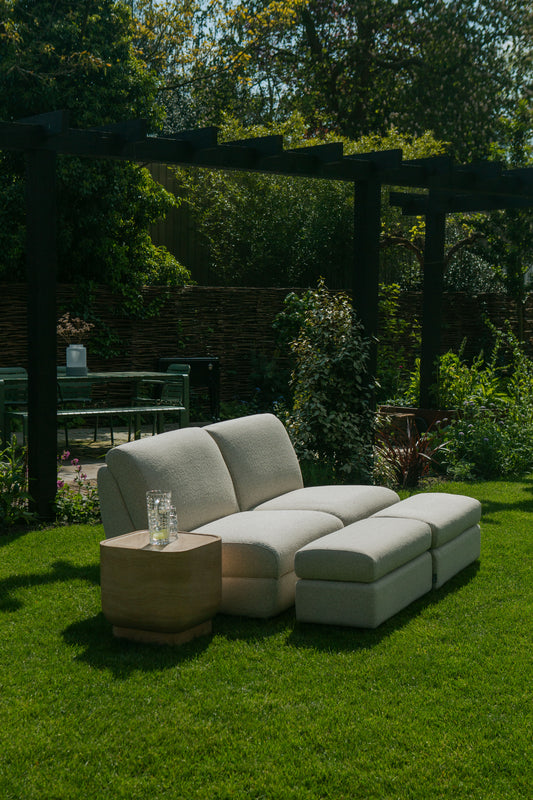 - Combineer de loungestoel met de bijpassende hocker